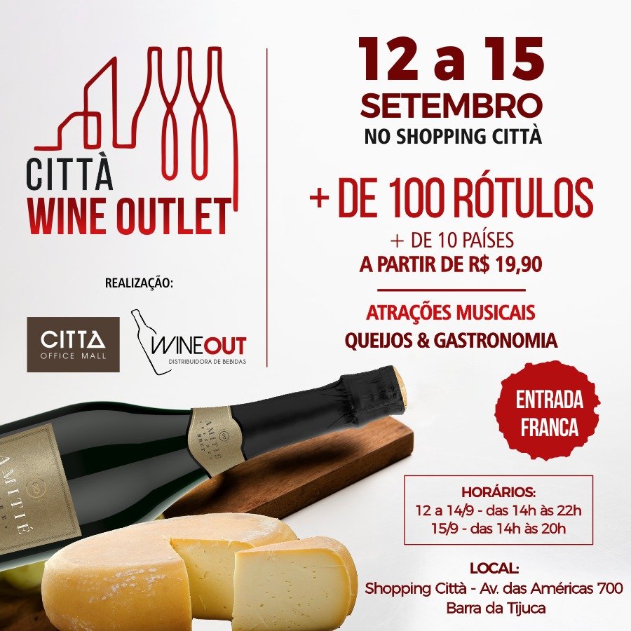 Esta edição do já consagrado Festival de Vinhos será o maior Outlet de Vinhos já realizado no RJ. Uma verdadeira queima de preços com mais de 100 rótulos de diversos países. Não perca esta oportunidade de comprar Vinhos a preços nunca vistos antes.