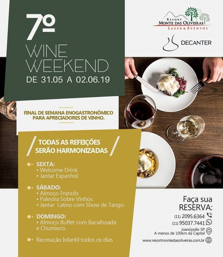 7°Wine Weekend – Final de Semana Enogastronômico para apreciadores de vinhos. De 31/05 à 02/06.