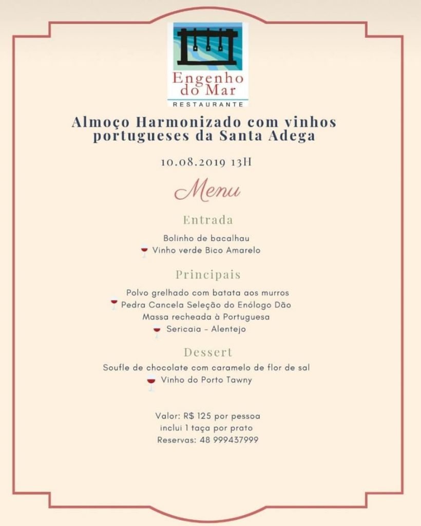 Não fique de fora do nosso almoço harmonizado para o Del Vino 2019. Ótima opção para este sábado com uma bela Vista da Praia do Rosa! Reservas 48 999437999