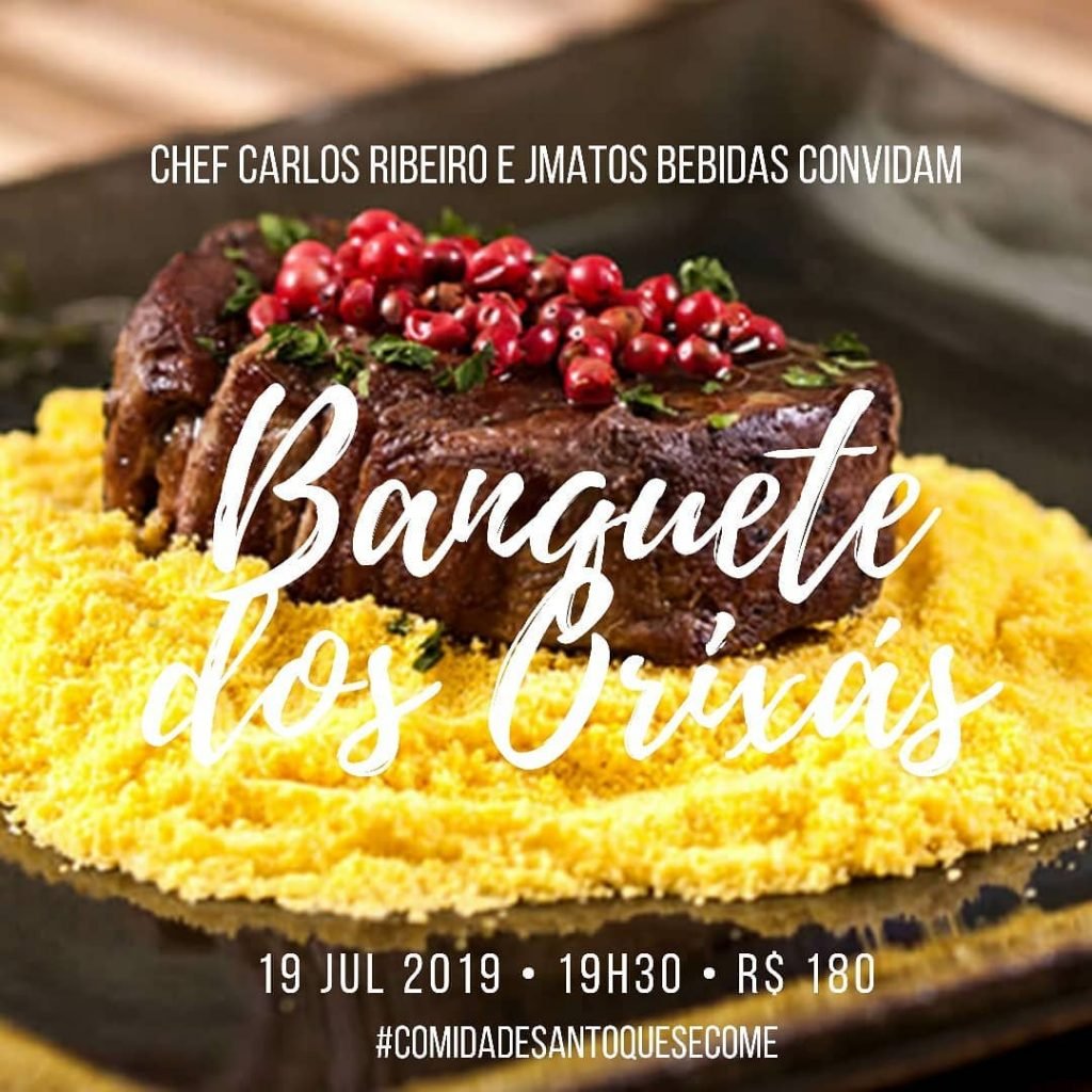 Banquete dos Orixás é uma experiência enogastronomica inspirada nas melhores receitas do Livro “Comida de Santo que se Come”, penúltimolançamento do Chef Carlos Ribeiro”. O evento além de promover a riqueza sensorial da comida e da cultura yorubá (e baiana), é uma ótima oportunidade para adquirir os livros autografados pelo próprio Chef.