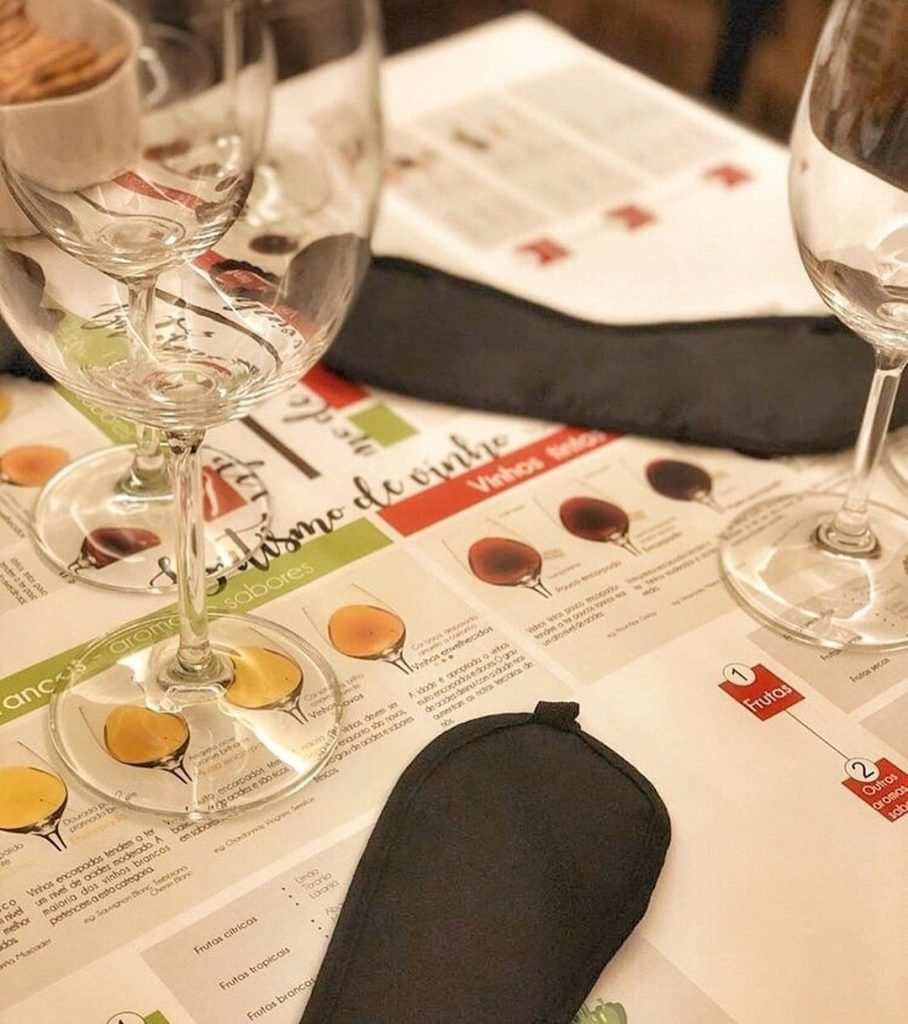 - 8 atividades incluindo como usar a visão e o olfato para apreciar o vinho, dicas de harmonização de comida e vinho e o vocabulário de vinho. Trazemos vinhos para degustar, petiscos harmonizados, água, vendas de olhos, instruções, papel de mesa com vocabulário de vinho.