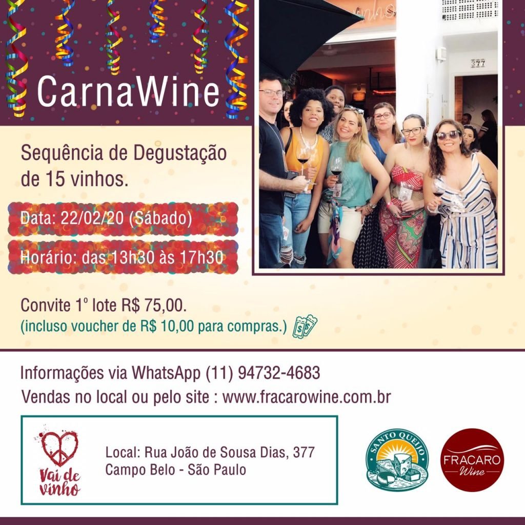 CarnaWine – Vai de Vinho Boteco – 22/02/20 – Sábado