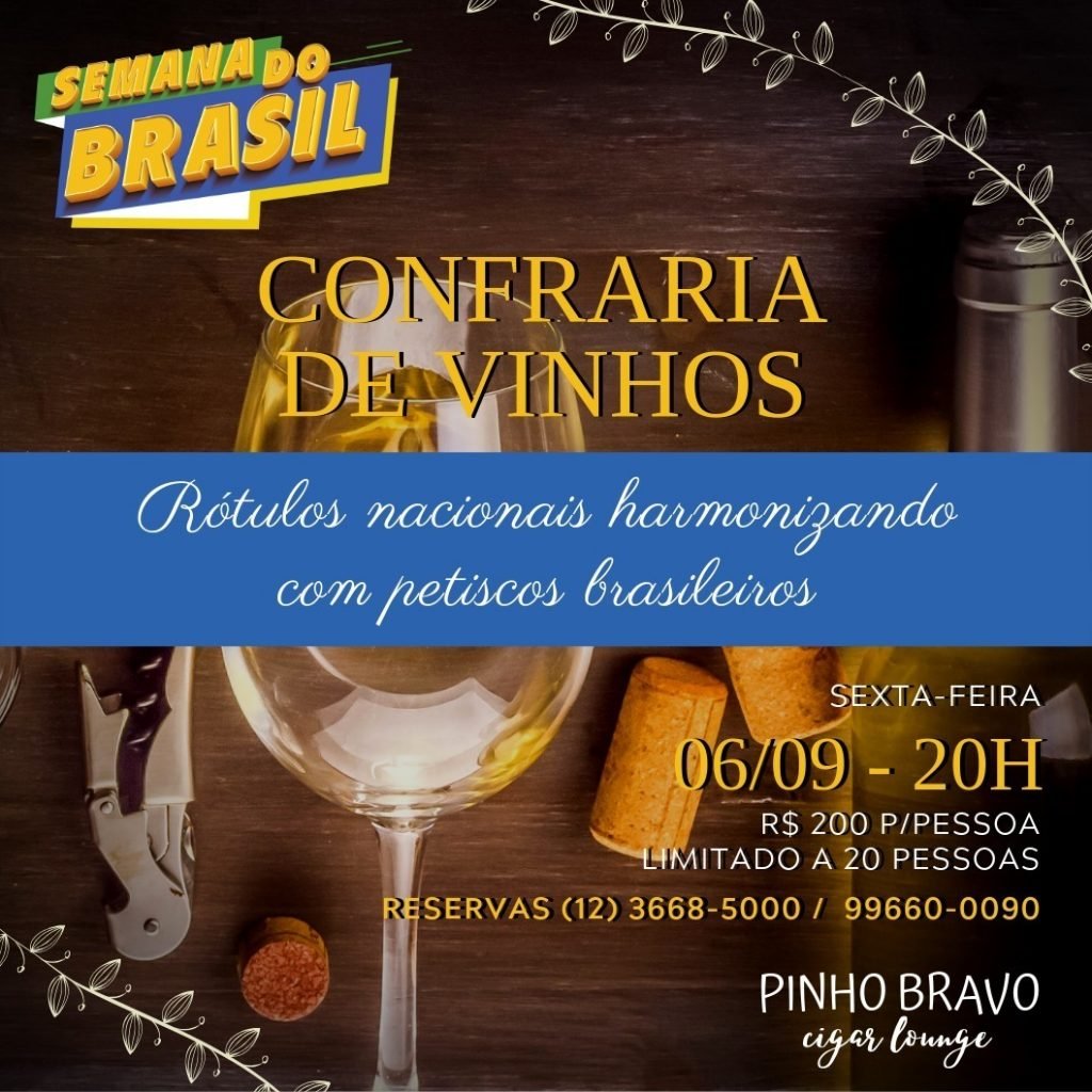 A próxima Confraria de Vinhos do Hotel Toriba acontece na sexta-feira, 6 de Setembro, na Sala Pinho Bravo – Cigar Lounge, dentro da campanha “SEMANA DO BRASIL” que se inicia nesse dia e vai até 15 de Setembro de 2019. Teremos uma degustação de vinhos com rótulos nacionais harmonizando com deliciosos petiscos brasileiros. O HOTEL TORIBA É TODO VERDE E AMARELO NA “SEMANA DO BRASIL”. Apoia e participa ativamente da Semana do Brasil, promovendo uma série de ações associadas com todas as suas atividades.