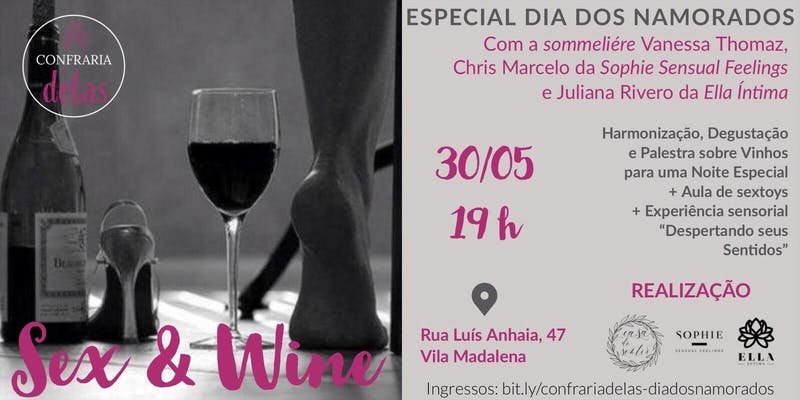 Harmonização, Degustações e Palestras sobre Vinhos para uma Noite Especial + Aula De Sextoys + Experiência Sensorial “Despertando seus Sentidos”.