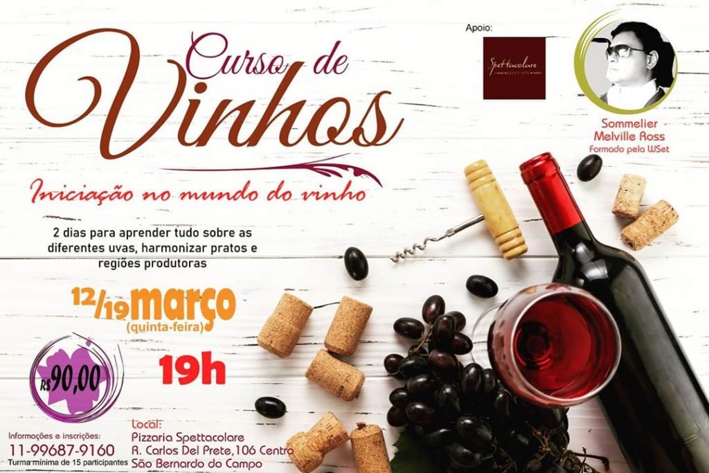 Tenha grandes assuntos para conversar com seus amigos num gostoso jantar. Para isto basta fazer o curso de vinhos nos dias 12 e 19 de marco em São Bernardo do Campo. Faça sua inscrição, vagas limitadas.