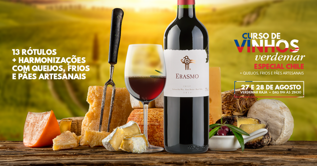 Você já conhece a vinicultura chilena? Nesta edição do nosso Curso de Vinhos, você poderá degustar 13 rótulos, harmonizados com queijos, frios e pães artesanais Verdemar! Garanta sua vaga para estas duas deliciosas noites, numa viagem enológica, junto ao nosso Consultor Cristóvão Oliveira, pelos tradicionais vinhos chilenos.