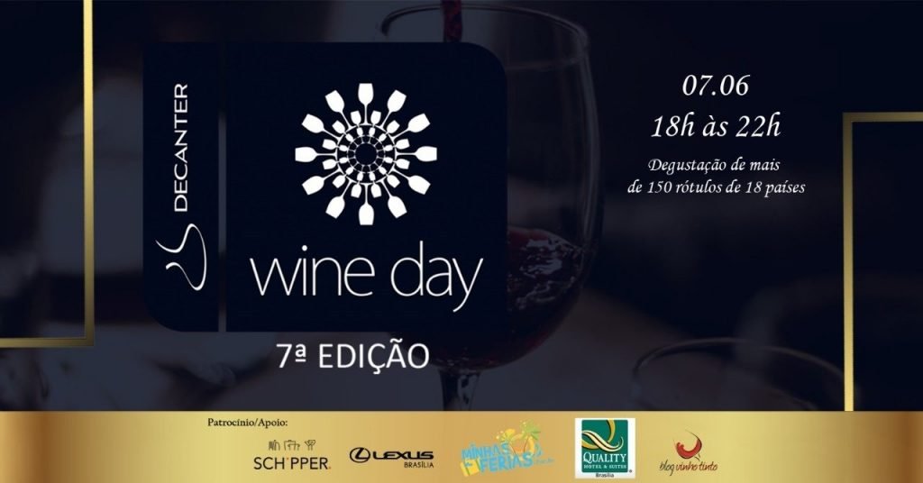 Um dos mais aguardados eventos de vinho de Brasília está próximo! O Decanter Wine Day chega a sua sétima edição e promete, mais uma vez, ser um grande sucesso. Este ano, será realizado no dia 07 de junho e, como nas outras edições, acontecerá no aconchegante Quality Hotel (em frente ao Park Shopping), que conta, inclusive, com garagem subterrânea para os participantes do evento.