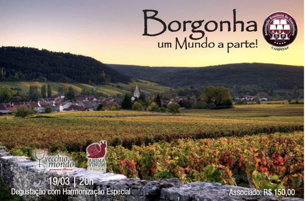 A ABS-Campinas, em parceria com a Vecchio Mondo, convida o público de Campinas para conhecer, e provar, um pouco da Borgonha nessa degustação dedicada a região mais encantadora da França e de todo mundo. A degustação contará com 5 vinhos da importadora Anima Vinum, especializada na região e que atua como descobridora de vinhos elaborados por pequenos produtores, conhecidos como “vignerons récoltants”.
