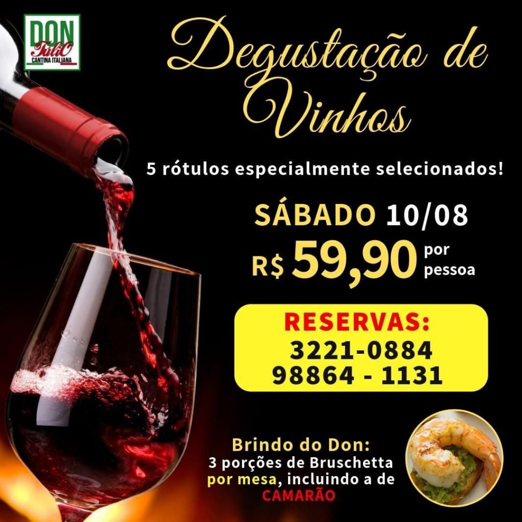 SÁBADO (10/08), a Don Túlio oferecerá, aos seus clientes, uma degustação vinhos por um preço super especial: