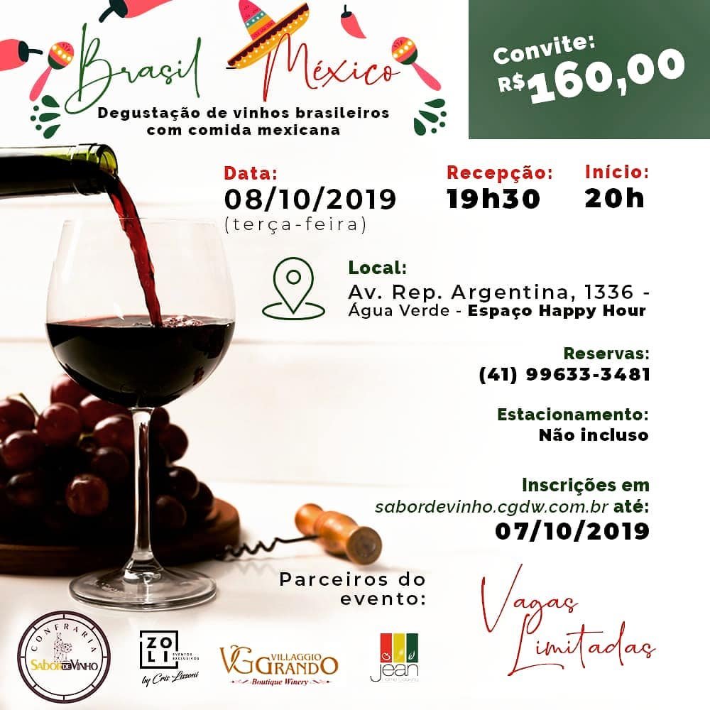 Essa é a sua oportunidade!🤩 É com muita satisfação que a Sabor de Vinho, juntamente com a Zoli Eventos Exclusivos e a vinícola Boutique Villaggio Grando tem o prazer de lhe convidar para um evento exclusivo, uma degustação de 5 rótulos do rico portifólio da VG. E nesse evento, o chef Jean Andretta preparou um cardápio especial mexicano para ser desfrutado com esses legítimos rótulos de *Felicidade Engarrafada*.🍾 Vagas limitadas!