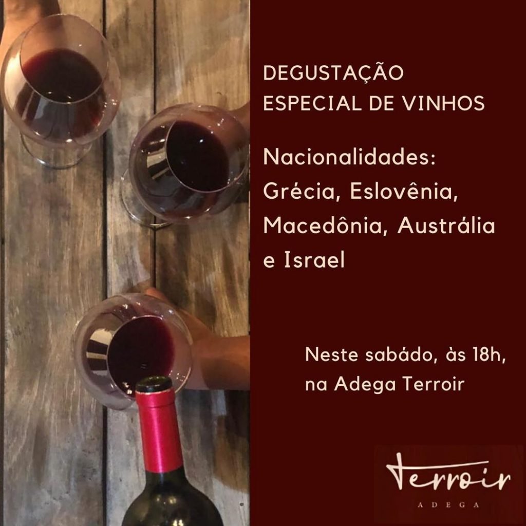 Você degustará vinhos da Grécia, Macedônia, Eslovênia, Austrália e Israel.