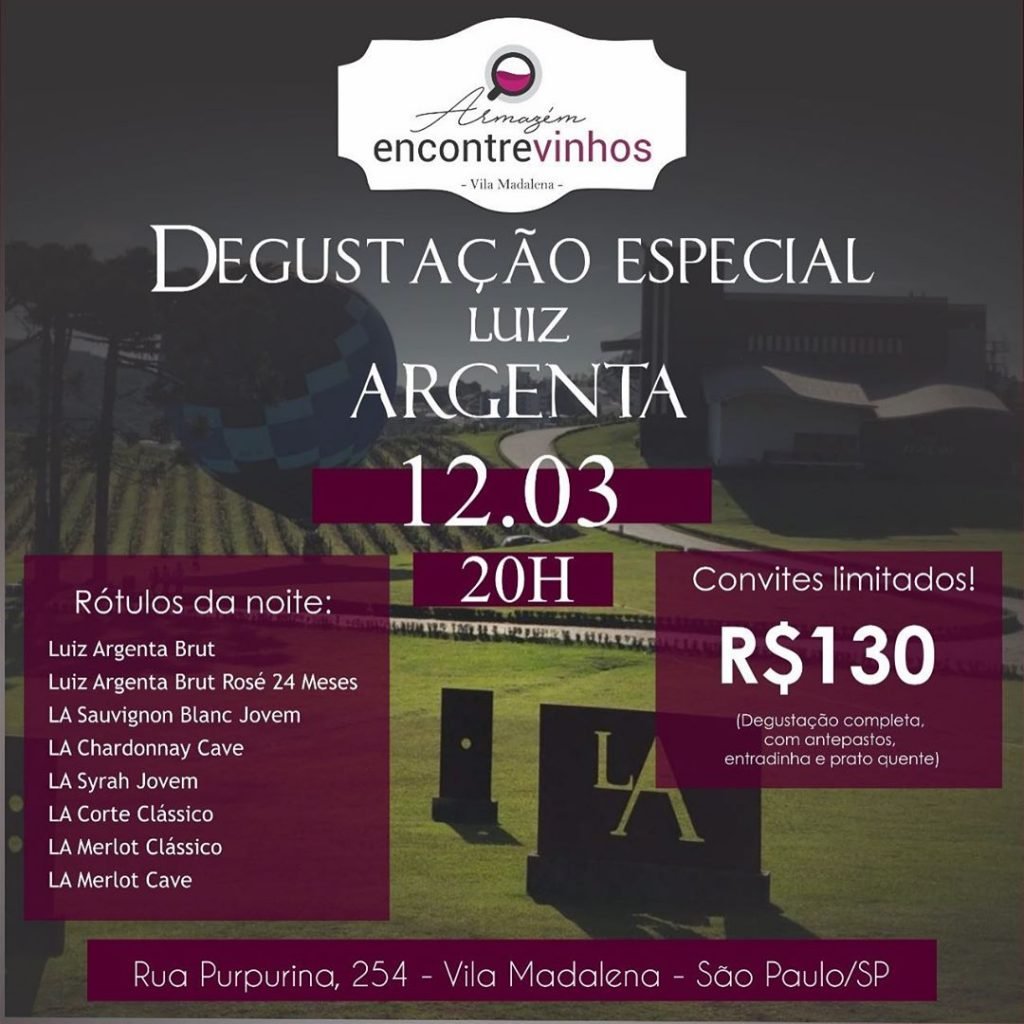 Serão 8 super rótulos da Vinícola LA, harmonizados com as entradinhas, antepastos e prato quente. A degustação será guiada pelo nosso Sommelier Mateus Benatti, passando um panorama geral da história da vinícola, vinificação, características das uvas e vinhos. Como sempre, nossos eventos são regados a muito vinho, conteúdo, troca de experiências e descontração. Venha participar com a gente. Vagas super limitadas!