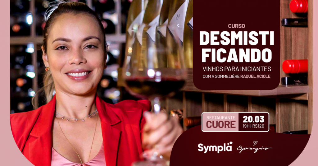 Dia 12, às 19h, a nossa sommelière Raquel Aciole convida você para aprender mais sobre o mundo dos vinhos. Venha desmitificar esse universo, participando de um curso incrível. O curso tem duração de em torno de 3hrs. Nele você aprende sobre tipos de uva, fermentação, história do vinho, como harmonizar diversos sabores, tipos de aroma, entre outros. Serão degustados 8 rótulos, Ele é um curso técnico, porém divertido e descontraído. Ideal para qualquer qualquer pessoa que queira aprender um pouco mais sobre o fantástico universo do vinhos.