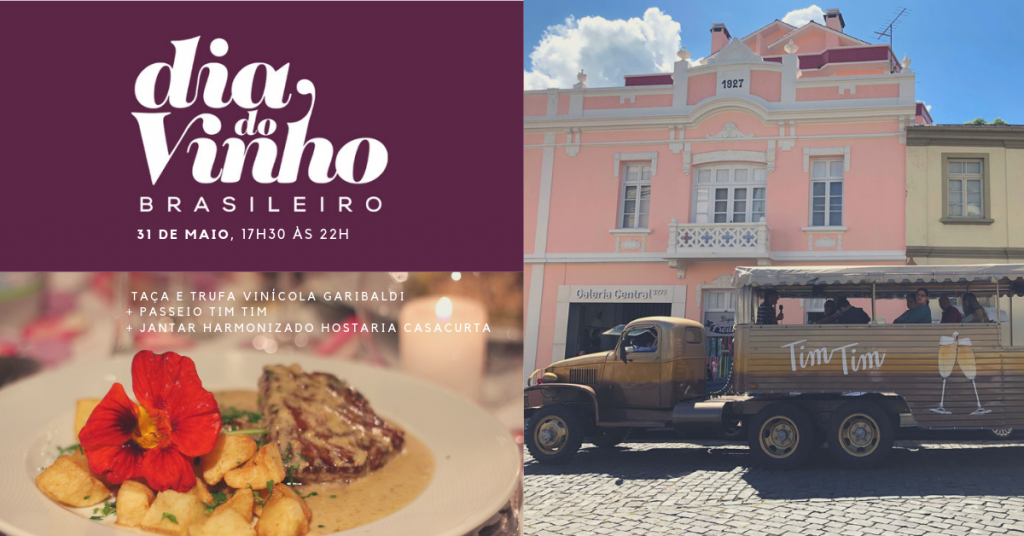 O que: passeio de Tim Tim + Taça e Trufa (espumantes da Garibaldi e trufas Devorata) + Jantar Harmonizado (4 pratos harmonizados com Prosecco, vinho branco, vinho tinto e espumante Moscatel). Menu do jantar: Couvert, Salada Luigi, Tortéi ao perfume de canela e amêndoas, Filé Dijon com batata sautée e Creme Brulée).