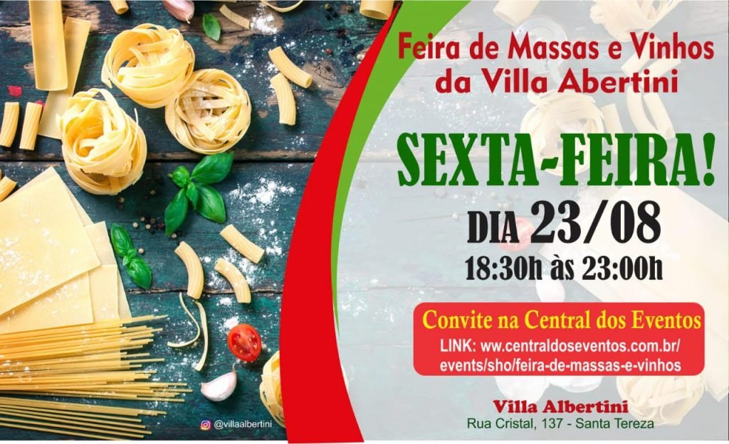 Feira de Massas e Vinhos Open Food dia 23 de agosto