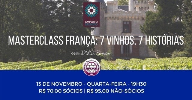 Alinhada a esse propósito, a Importadora EMPORIO MUNDO promove, em parceria com a ABS/SC, esta Masterclass conduzida pelo CEO DIDIER SIMON, exibindo a França em 7 vinhos e 7 histórias: