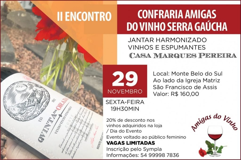 Mais informações: 54 9 9998 7836 ou pela Instagram Amigas do Vinho Serra Gaúcha