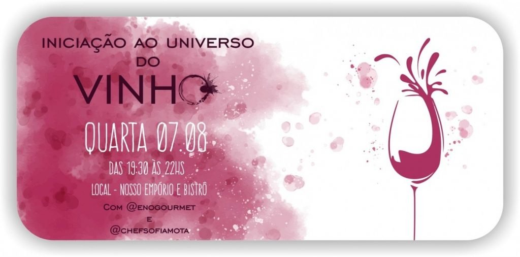E a melhor parte de disso tudo? Que além de uma aula de peso, teremos degustação de 04 rótulos com um menu degustação harmonizado e elaborado pela Chef e proprietária do Nosso Empório e Bistrô, Sofia Mota. Afinal, de pratos incríveis ela também entende, né?!