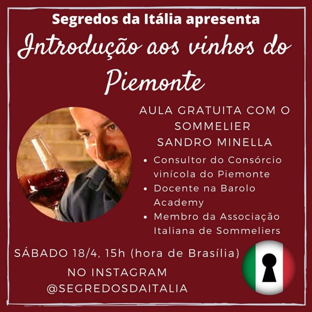 O acesso é gratuito, pela live do instagram no sábado às 15h de Brasília, 20h da Itália.
