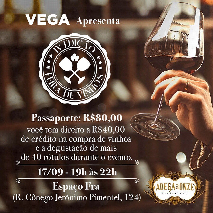 A IV FEIRA DE VINHOS será maior e melhor! Não perca! Garanta logo seu ingresso, vagas limitadas.