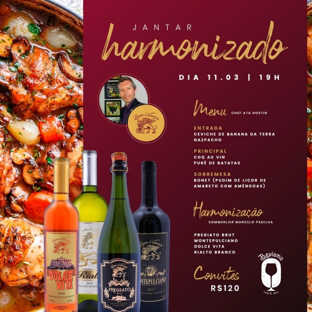 Que tal um jantar harmonizado para você desfrutar o sabor de rótulos incríveis da Vinícola Leone di Venezia?! 🍷
