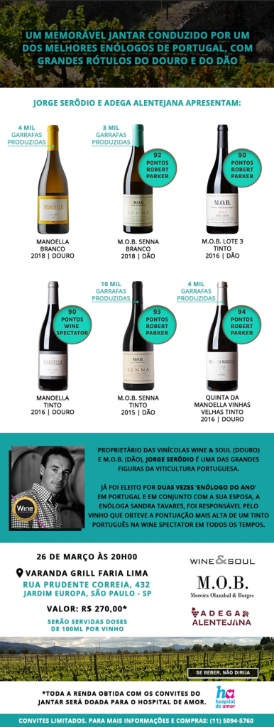 Valor especial por pessoa: R$ 270,00 – esse valor inclui o jantar completo (entrada, prato principal, sobremesa e café)  e os vinhos (citados acima)