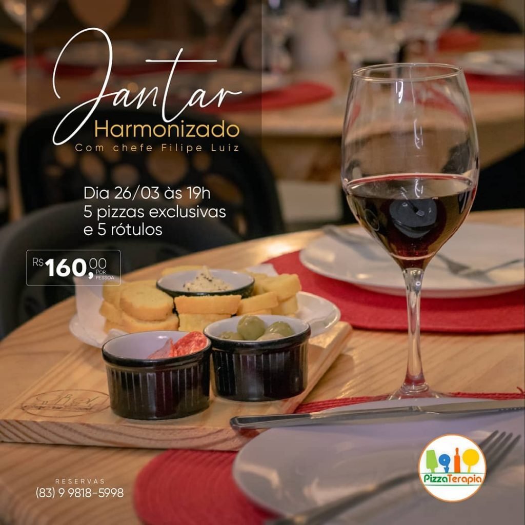 No dia 26 de Março a PizzaTerapia promove o Jantar Harmonizado com o presença do nosso chef Filipe Luiz 🙌🙌