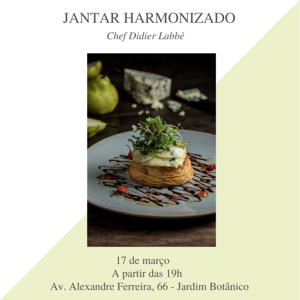 Vem aí a edição de março do Jantar Harmonizado do chef @didierlabbe. Dia 17 de março, a partir das 19h.