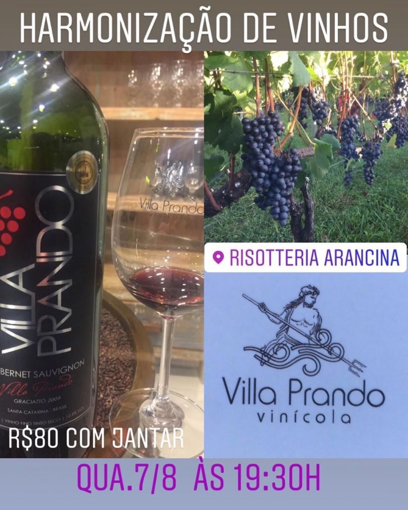 Quarta-feira 7/8 às 19:30h na Risotteria Arancina em parceria com a Villa Prando @villaprandovinicola e a presença ilustre do nosso querido vinicultor Sr. Honório Prando e toda sua sabedoria a ser compartilhado com você!