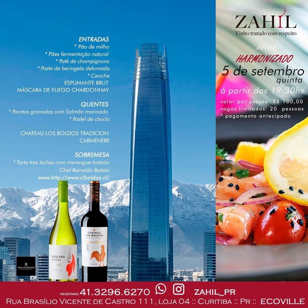 Jantar Harmonizado culinária Chilena com vinhos do Viña Los Boldos.