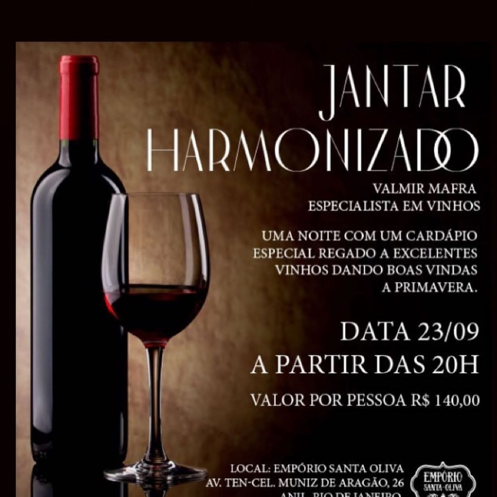 No dia 23 de setembro, a partir das 20h, um jantar harmonizado (R$ 140,00 pessoa) com vinhos selecionados pelo nosso especialista Mafra. Ele é o responsável pelas escolhas, que será servido na ocasião.