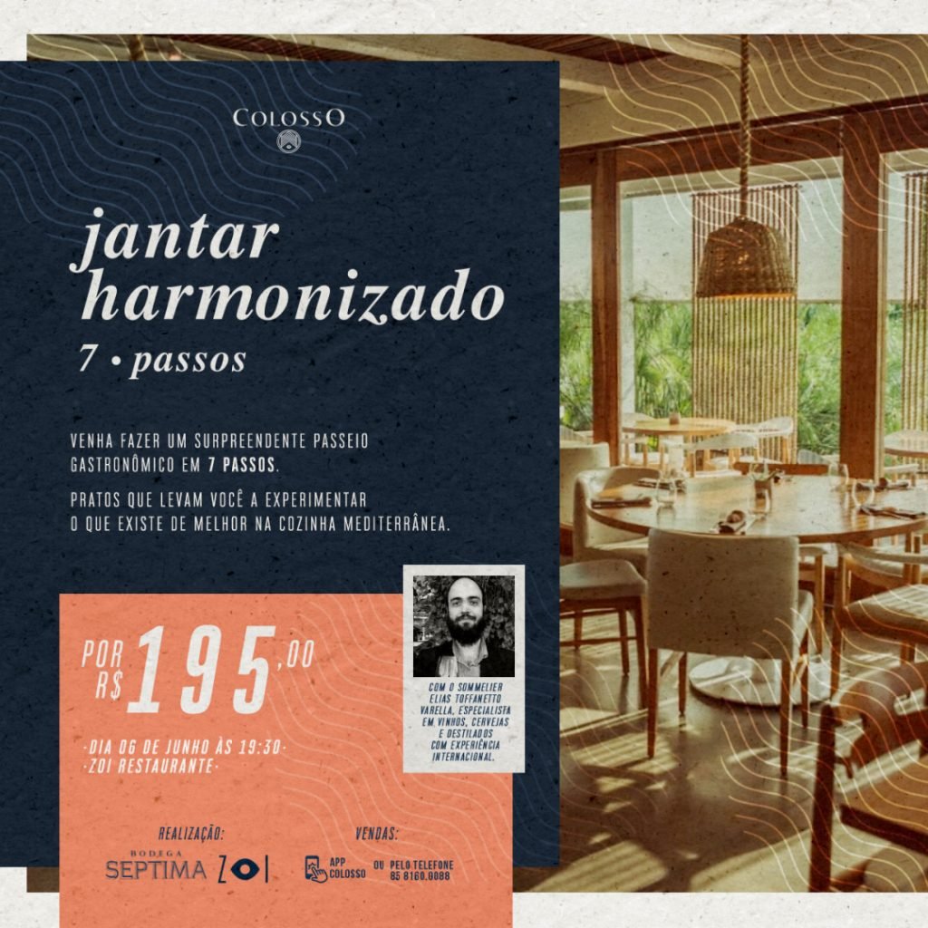 Jantar no Zoi Restaurante é sempre especial, mas um Jantar Harmonizado é sempre uma experiência única! Dia 06 de junho, as 20h no Zoi Restaurante, teremos o nosso Jantar com 7 passos de harmonização, desde a entrada e a sobremesa. O menu foi desenvolvido pelo Zoi Restaurante, harmonizado com uma seleção especial de vinhos feita pela Bodega Septma, incluindo o Spetima Lote Especial Malbec (com amadurecimento de 24 meses em barricas de carvalho e 12 meses em garrafa). Contaremos também com a presença do Sommelier Elias Toffanetto Varella, reconhecido internacionalmente por seus conhecimentos sobre vinhos, cervejas e destilados. O Jantar conta com os seguintes vinhos: