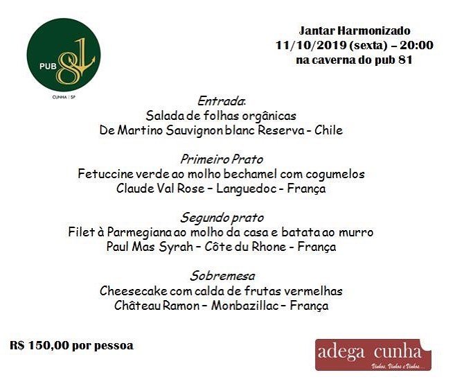 Atenção galera! Jantar Harmonizado com parceria com @adegacunha e a sua melhor seleção de vinhos no dia 11/10! A primeira edição foi um sucesso! Corre pra fazer a sua inscrição porque as vagas são limitadas! 🍷❤️