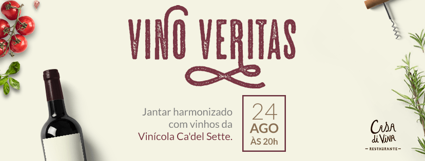 Sábado 24 de agosto tem jantar harmonizado na Casa di Vina, com vinhos da vinícola italiana Ca’ del Sette. A iniciativa faz parte do projeto Vino Veritas, que traz, todo penúltimo sábado do mês, jantares harmonizados com diferentes vinícolas a cada edição. Conheça o cardápio e garanta seu ingresso!