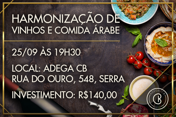 Teremos uma sequência de 05 iguarias da culinária árabe, devidamente harmonizadas com 05 rótulos de vinhos (de varias partes do mundo, incluindo Líbano).