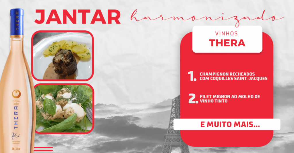 Venham saborear um incrível menu harmonizado com os maravilhosos vinhos da vinícola THERA.