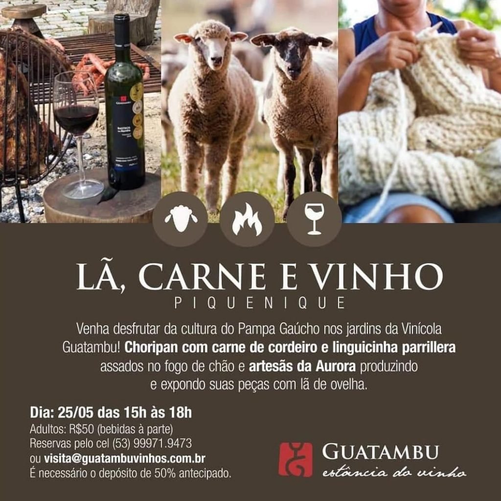 Será no próximo sábado, dia 25/05, nos jardins da vinícola, com choripan com carne de cordeiro e linguicinha parrillera assados no fogo de chão e ainda artesãs da Aurora produzindo e expondo suas peças em lã de ovelha! Venha desfrutar da nossa cultura!