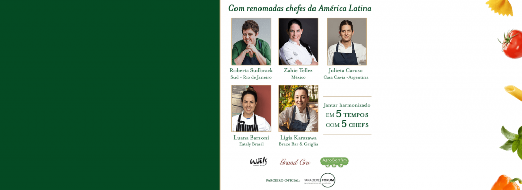 Para celebrar os 4 anos do Eataly, criamos La Grande Cena, um jantar harmonizado com 5 chefes renomadas da América Latina. Brasil, Argentina e México serão os 3 países protagonistas desse evento gastronômico inédito.
