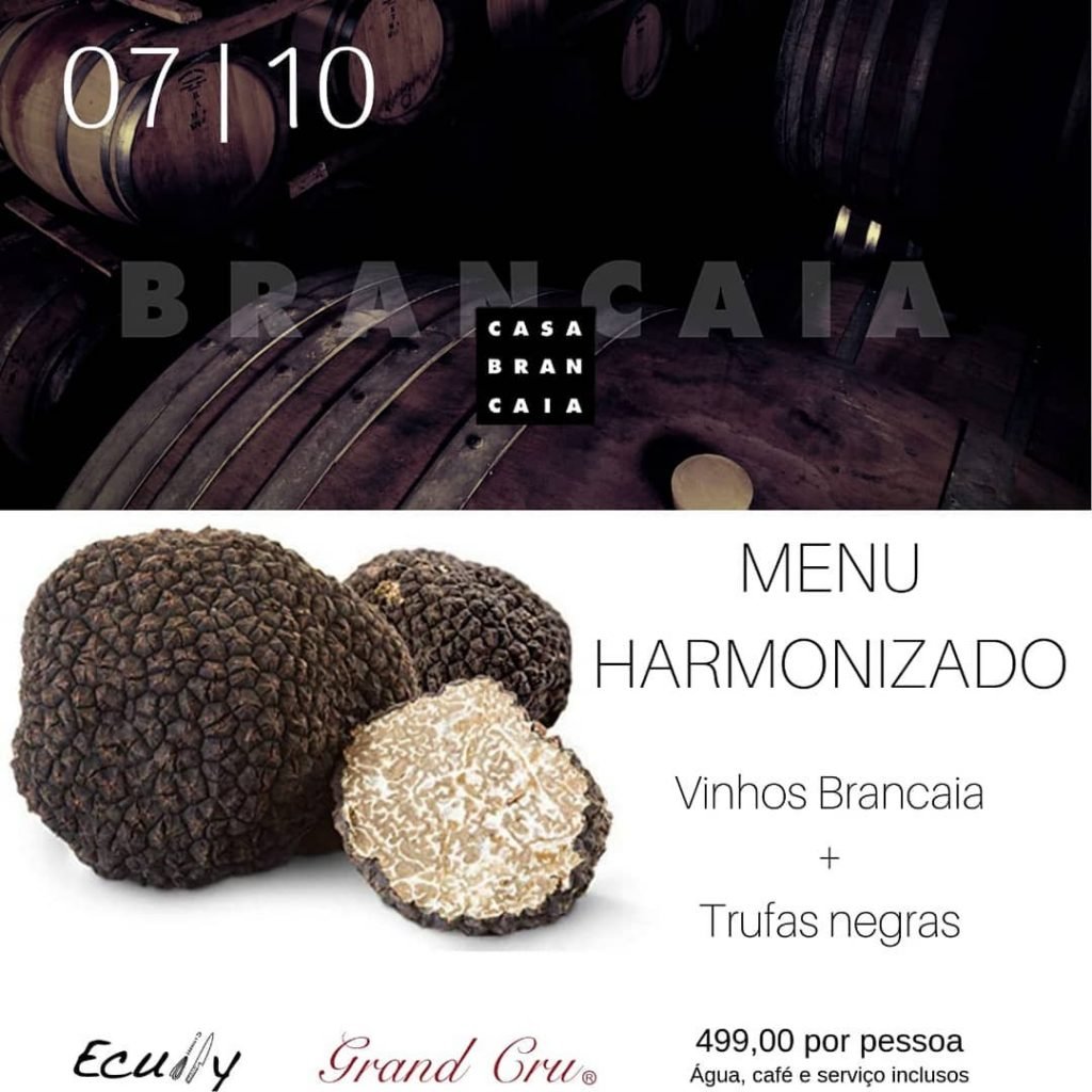 com um menu de 4 pratos, cada um pareado com um vinho da Casa Brancaia. As trufas frescas chegam direto da Toscana. Você não pode perder!