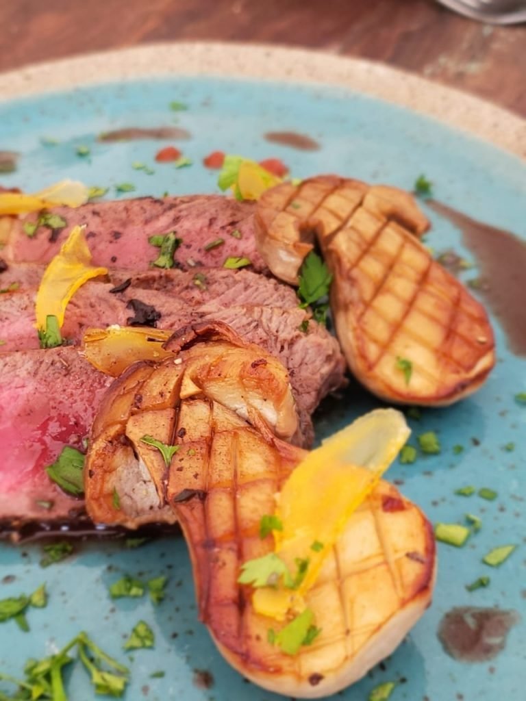 A primeira entrada é um Bao de Ostra que será harmonizado com espumante da Família Geisse. A segunda entrada é uma Sopa de ervilhas que será harmonizada com o rosé Argentino Avarizza da uva Canarí. De principal temos um Contra-filé, porchini e gema curada para harmonizar com o tinto MTB (uma mistura de malbec, petit verdot e cabernet sauvignon). A sobremesa, harmonizando com vinho do porto, é uma Torta holandesa.