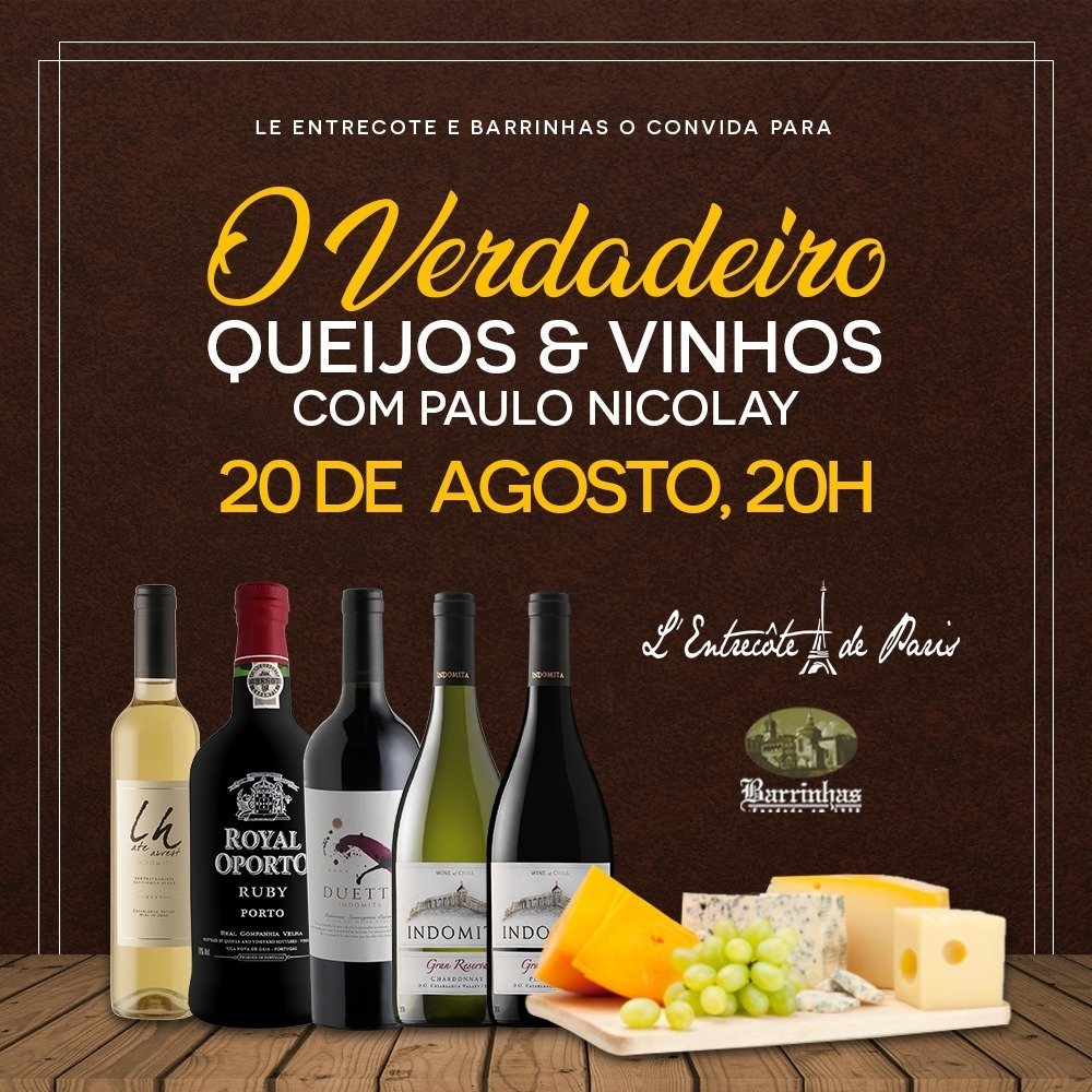 No dia 20/08, às 20h, realizaremos o Jantar Harmonizado “O Verdadeiro Queijos & Vinhos”, com o nosso Consultor de Vinhos Paulo Nicolay. Será no restaurante @lentrecotedeparis, no Rio de janeiro.
