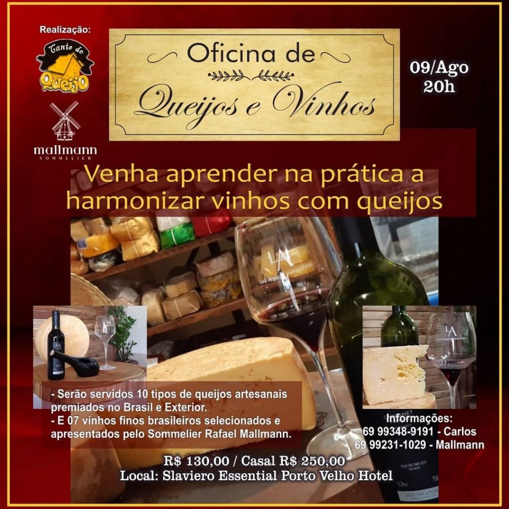 O evento será realizado no dia 09 de Agosto, no Hotel Slaviero Essential, às 20h, com consagrados e premiados queijos de Minas Gerais, e vários estilos de vinhos de diversos terroirs do Brasil, em uma noite de degustações, aprendizado e harmonização.