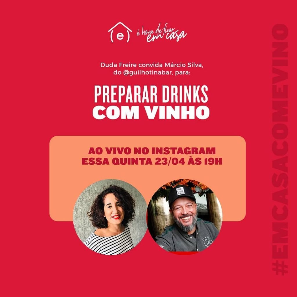 Que tal preparar novos drinks #EmCasaComEvino? 🥰 23/04, às 19h, @dudafreire e @marciojs do @guilhotinabar vão preparar #drinks com #vinho AO VIVO!