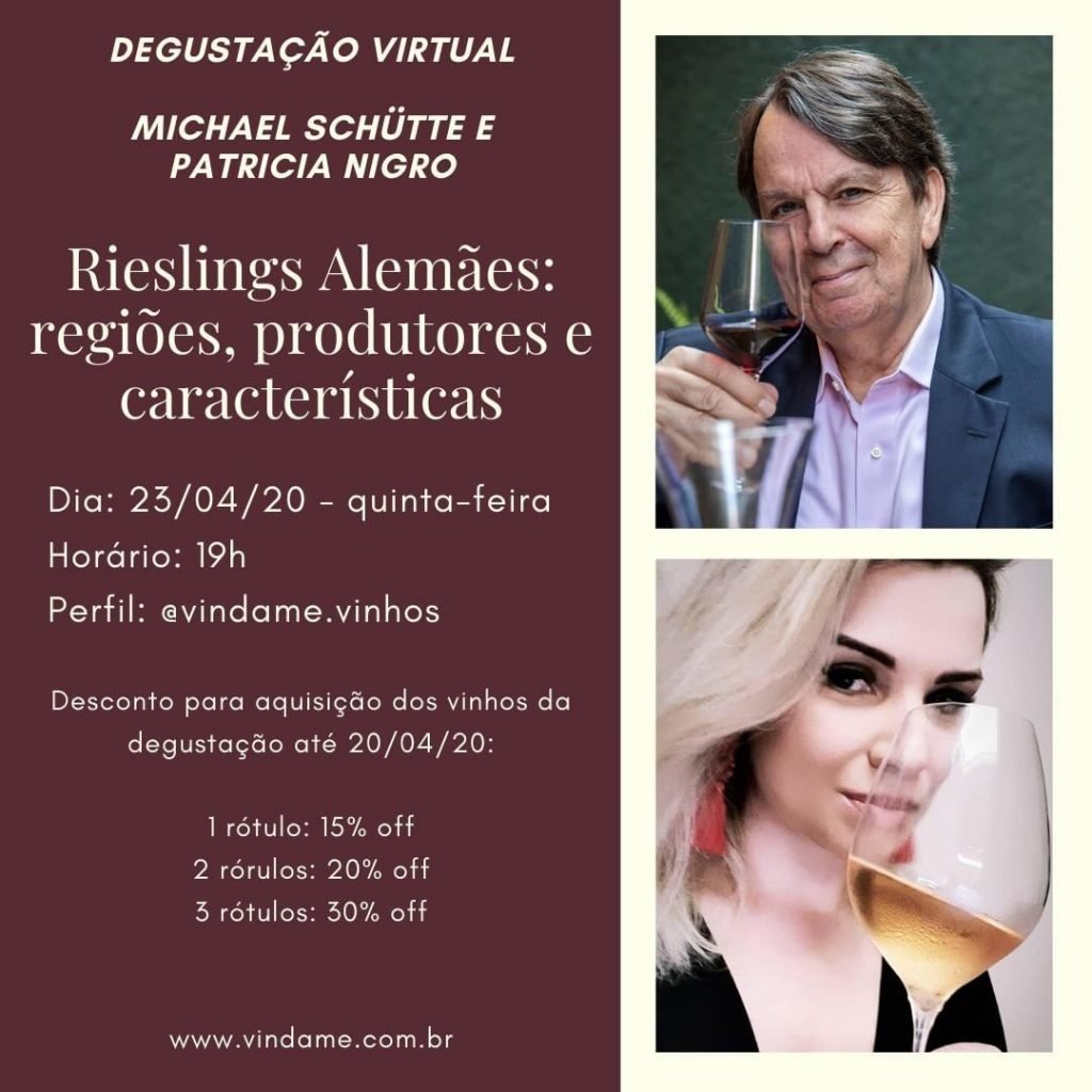 Michael Schütte, diretor da Vindame Vinhos, convida para degustação virtual de Rieslings Alemães, com a participação de Patricia Nigro (@winelover_br).