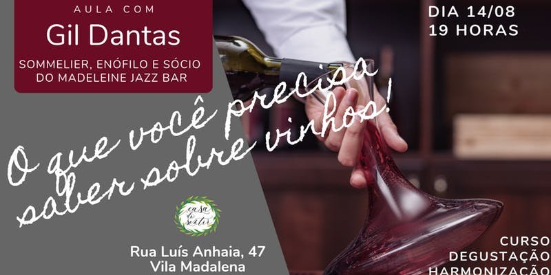 A Casa do Sentir, em parceria com o sommelier Gil Dantas, promoverá no dia 14 de agosto, a partir das 19 horas, um curso de vinhos diferente, divertido e muito rico em conteúdo!