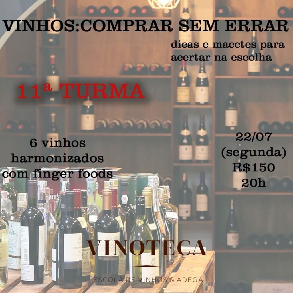 Local: Vinoteca – Escola de Vinhos e Adega. Rua 13, 1268, Setor Marista