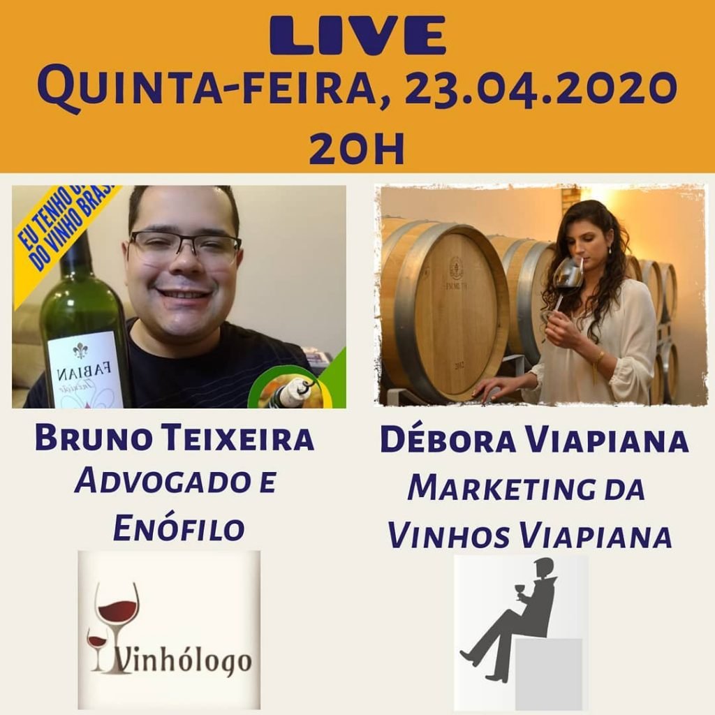 Quinta-feira, dia 23.04.2020, às 20h, @vinhologo fará uma live com a Débora Viapiana, Marketing da Vinhos Viapiana.