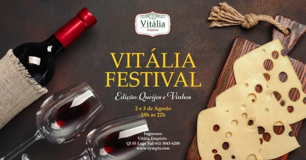 O Vitália Festival traz em sua primeira edição um evento com degustação de vinhos, queijos, frios, antepastos, pães e outros produtos oferecidos pelo Empório, shows e muitas surpresas. Serão mais de 80 rótulos de vinhos, produtos importados e nacionais com a qualidade do Empório Vitália. E o melhor? Na compra do seu ingresso, R$ 50,00 serão revertidos para compras no empório.