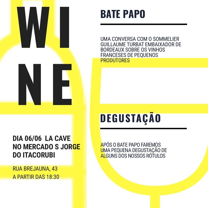 No dia 06/06 vai rolar um bate papo com nosso sommelier Guillaume Turbat e uma pequena degustação de alguns rótulos de vinhos franceses.