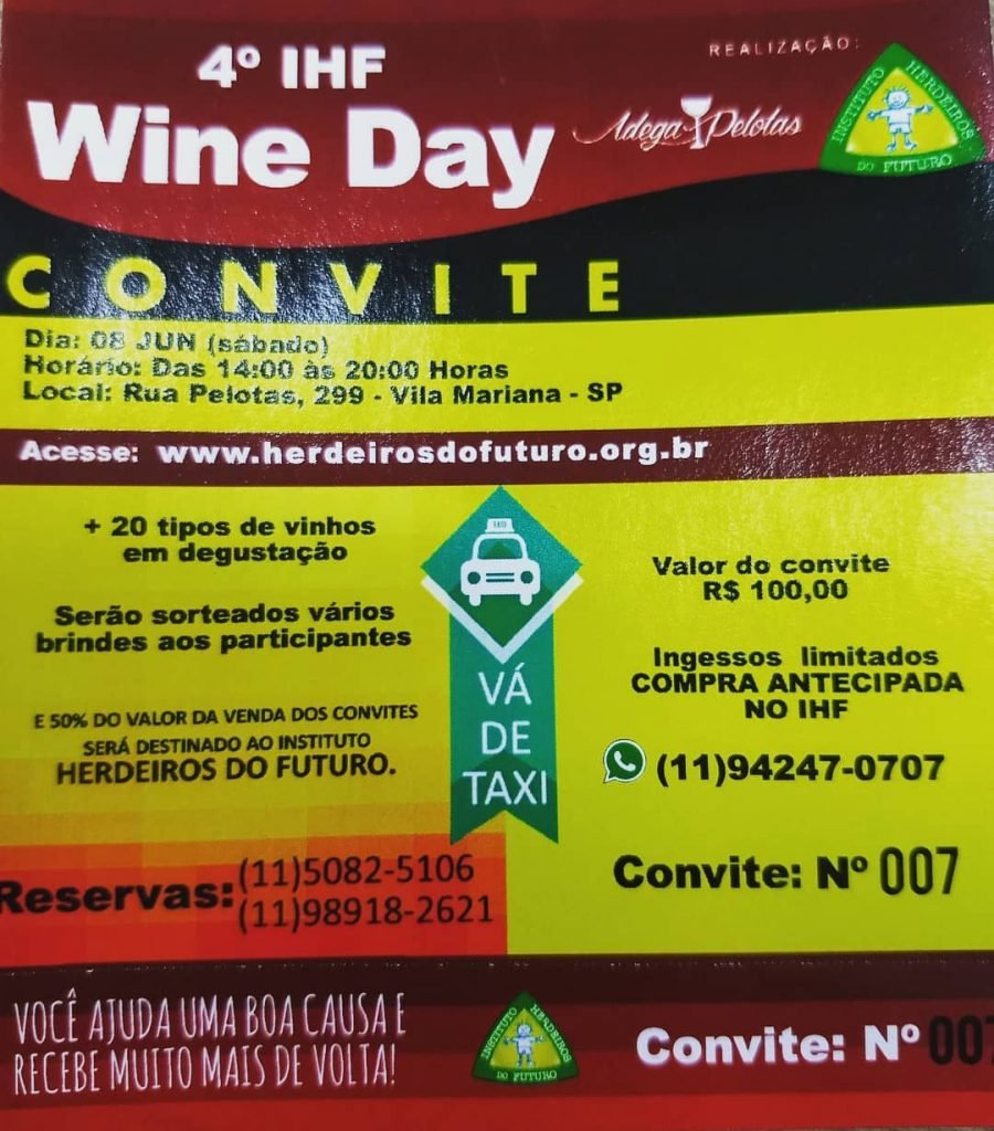 50% do valor da venda dos convites será destinado ao Instituto Herdeiros do Futuro